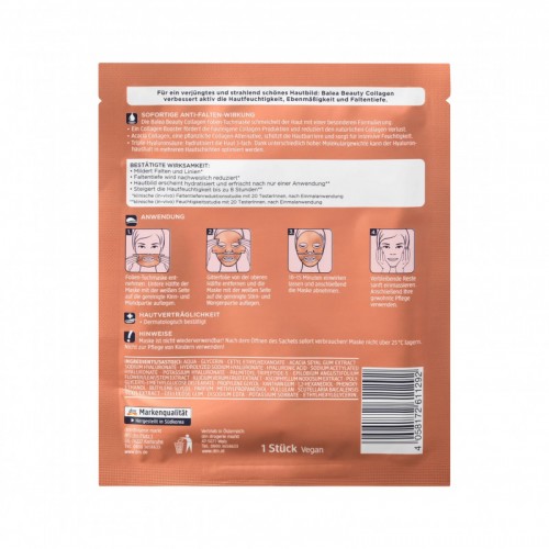 The Balea Beauty Collagen Foil Sheet Mask ensures a rejuvenated and radiant complexion. It actively improves skin moisture, evenness and depth of wrinkles.