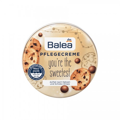 -The Balea care cream "You're the sweetest" pampers you with the -delicious scent of biscuits and chocolate drops.