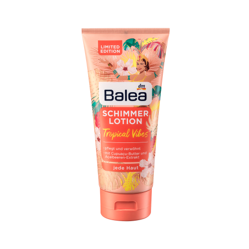 The Balea Shimmer Lotion Tropical Vibes leaves a seductive shimmer on the skin and envelops you in an exotic scent of tropical flowers.